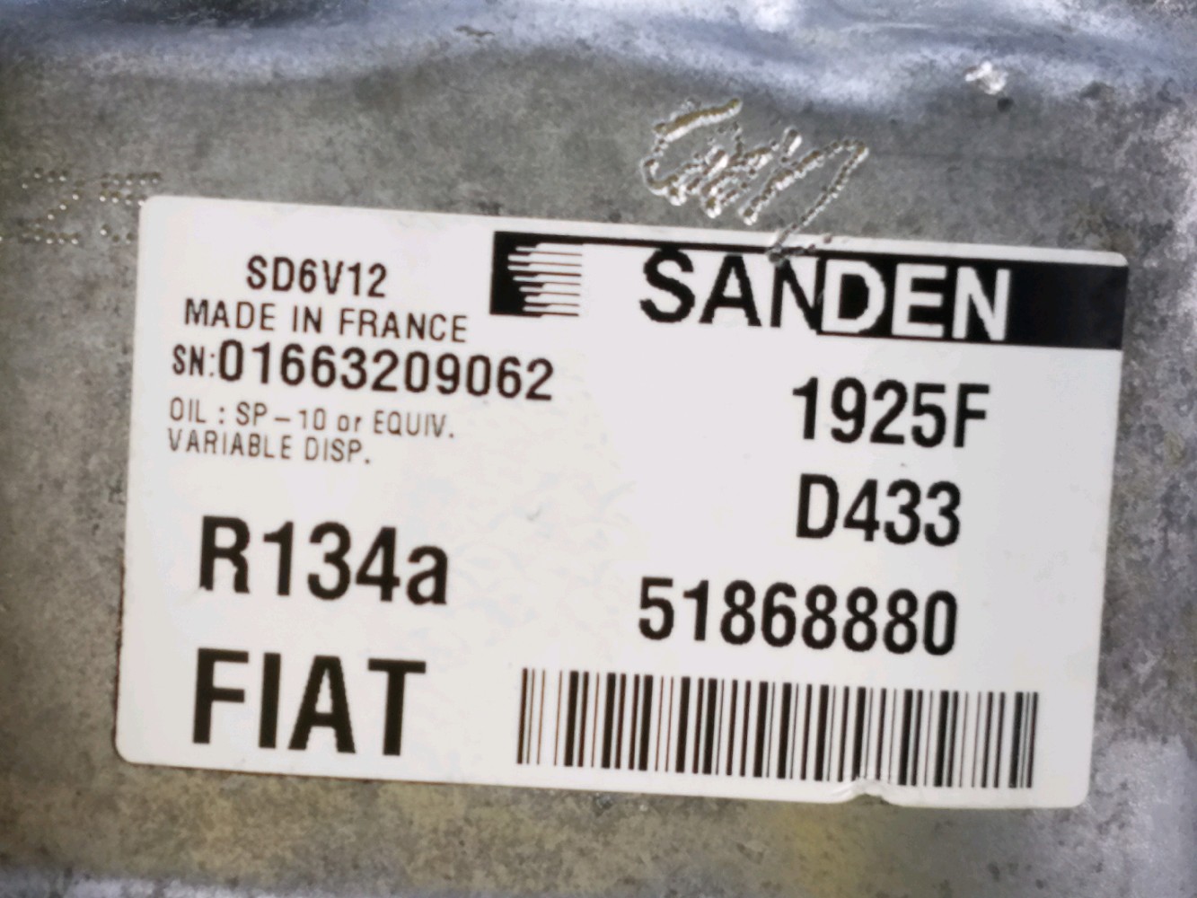 Compresseur de climatisation FIAT DOBLO 2 PH.2 1.6 JTD réf. 52061760 Q0-5168R Q0-5168R