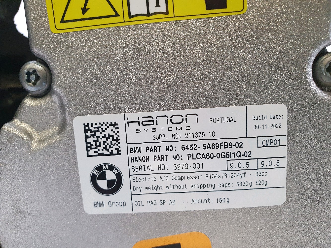 Compresseur de climatisation BMW SERIE 4 2 PH.1 EDRIVE40 réf. 64525B31E59 E1-1755G E1-1755G